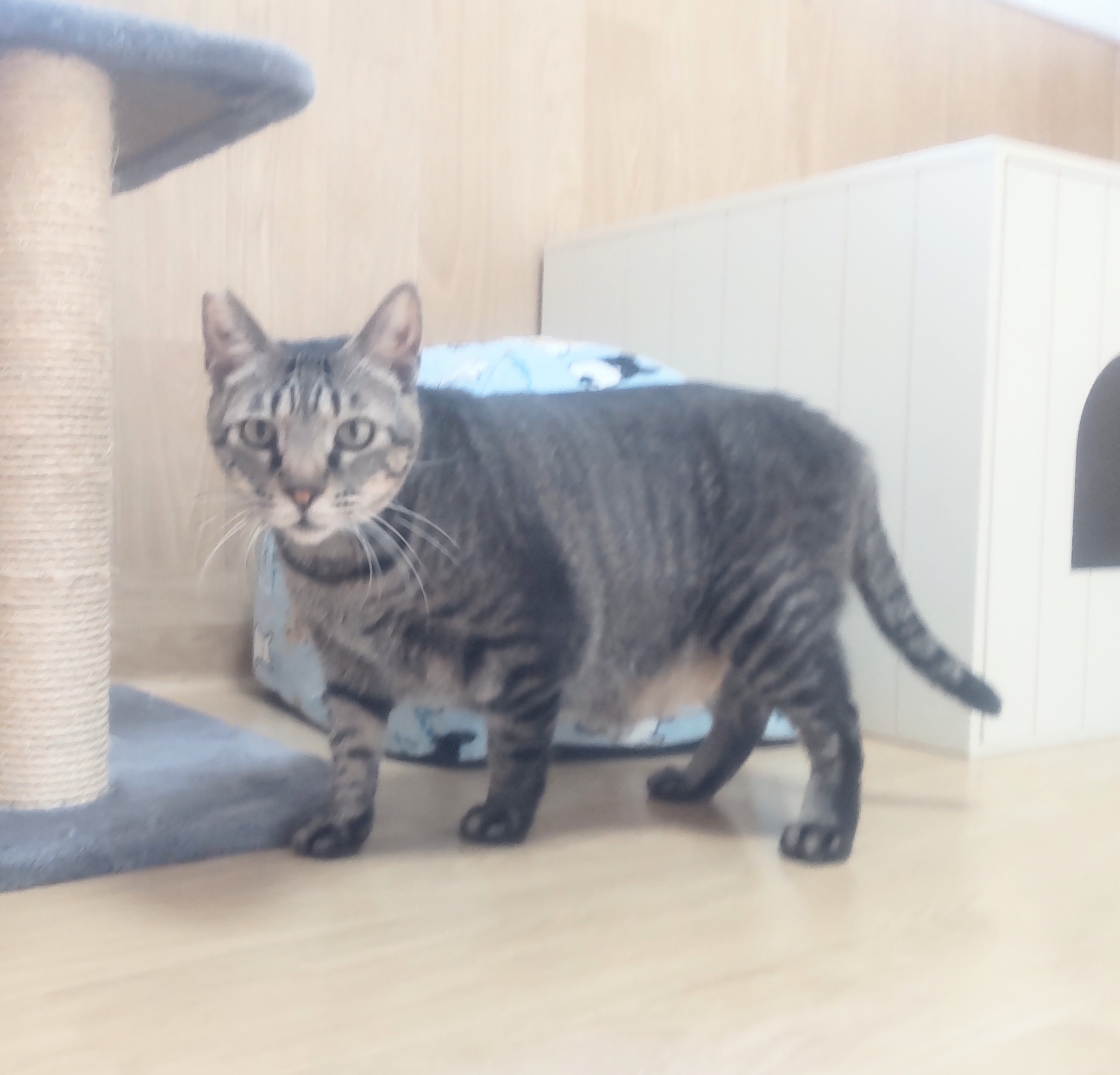 掲載日:2025年11月20日 譲渡動物動物 :25-46 整理番号: 25-46 分類: 猫(譲渡) 種類: ミックス、キジトラ 性別: オス 特徴: 5歳。去勢済み。FIV陰性。内部寄生虫の駆除投薬済。右耳がカットされています。 人馴れした子で喉を鳴らして身体をスリスリしてきます。可愛い声をしています。体格がよくお腹ぷよぷよしていて気持ちいいです。