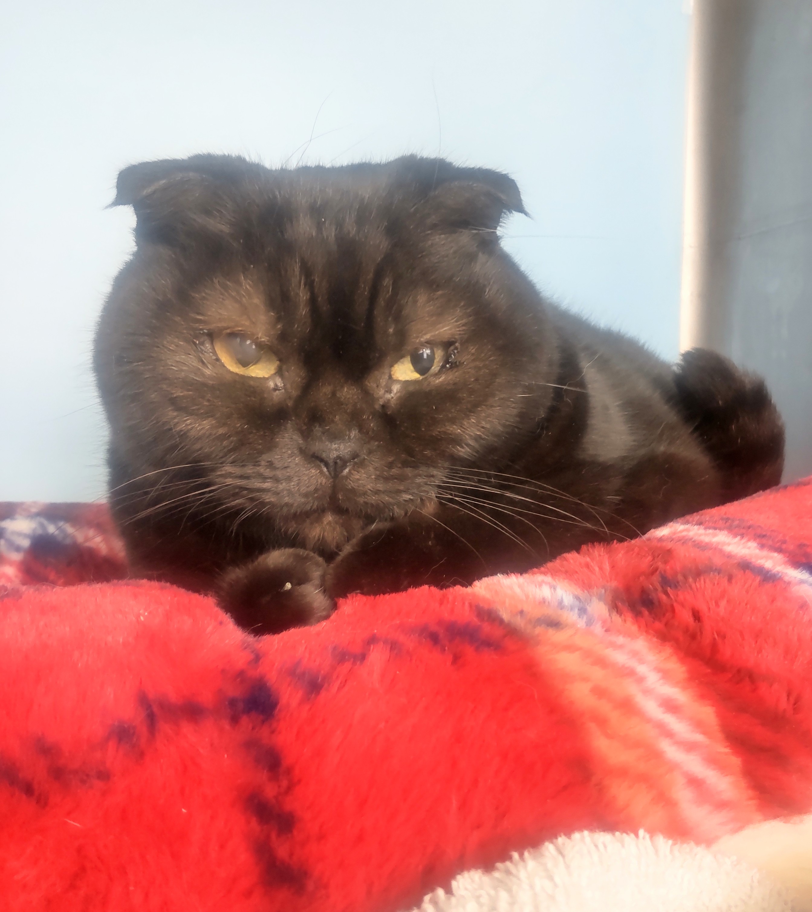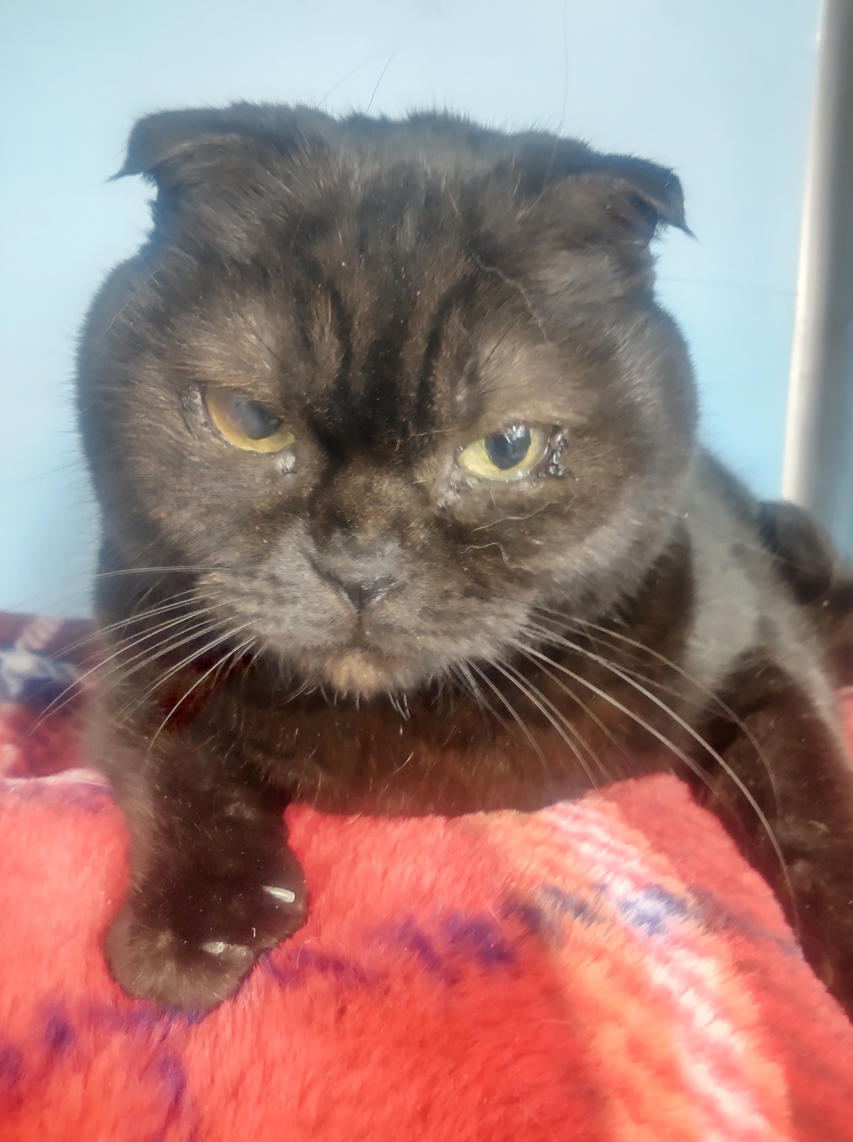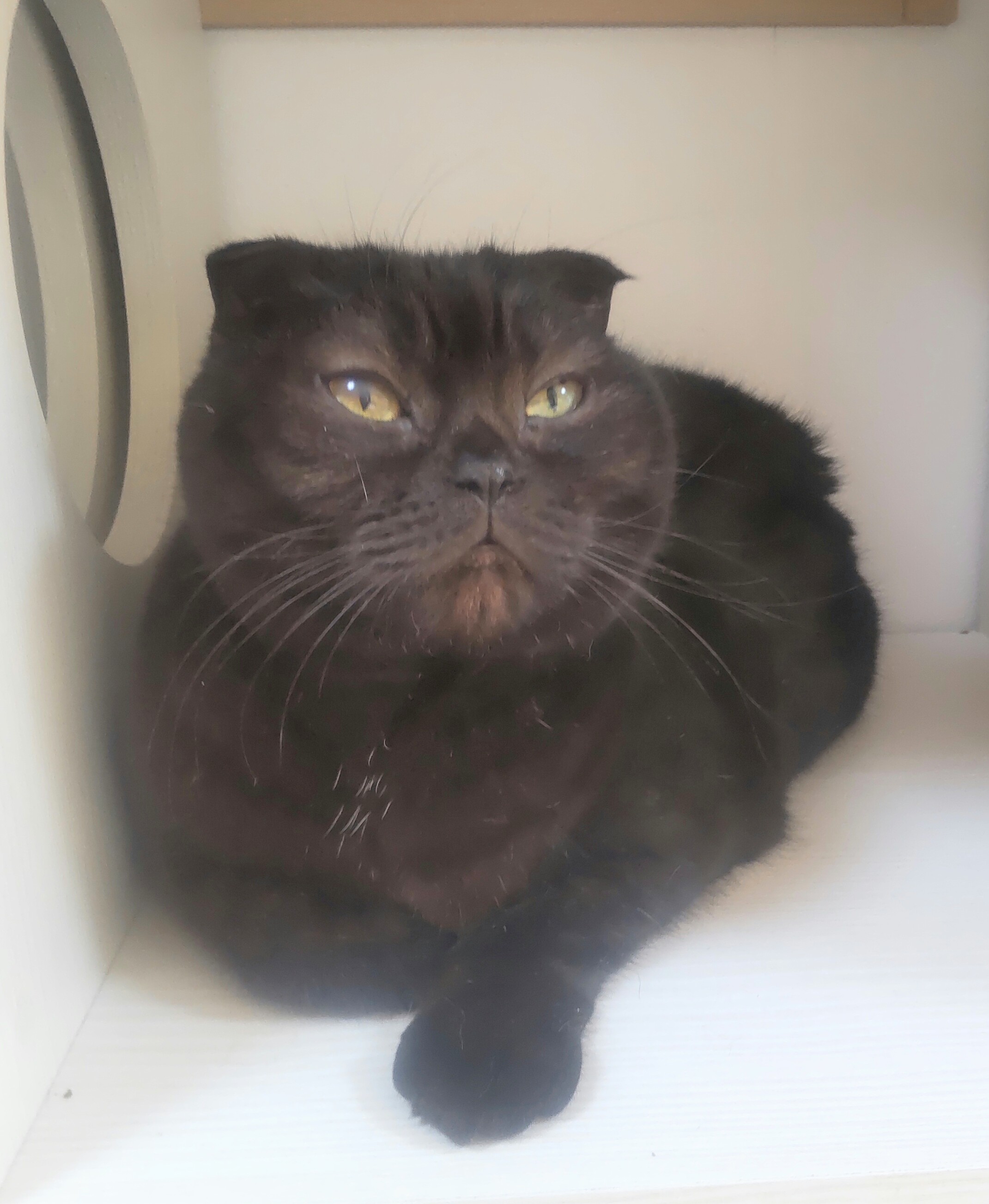 掲載日:2026年1月29日 譲渡動物動物 :25-63 整理番号: 25-63 分類: 猫(譲渡) 種類: スコティッシュフォールド、ブラック 性別: メス 特徴: 10歳。不妊手術済。 人馴れしています。大柄な猫です。コロコロしたボディです。 愛嬌があって、近寄ってきます。 お尻に毛玉の塊があってトリミングしました。 寄り添って頂ける飼い主さんを募集します。